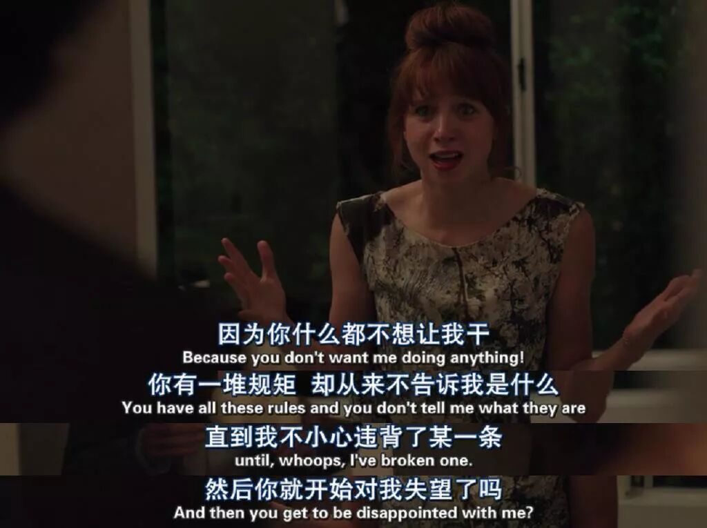 凯文斥责茹比没有一个女友该有的样子,他没将这件事归咎于搭讪的男子,觉得肯定是茹比的某些举动让对方有了非分之想。如此无理的逻辑让茹比无言以对。茹比在关系中最难以忍受的是,凯文对两人的关系似乎有很多要求和规定,但很少明确地说明自己的期待。凯文希望茹比能够自然地满足他所有的期望,茹比则觉得自己不知道怎么就会触犯凯文的标准。