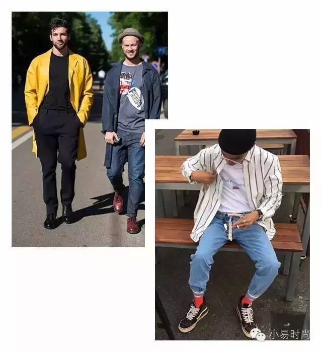 穿文化衫,尤其是T恤的时候,是男士着装最适合玩色彩游戏的时候。无论是图案、T恤颜色,甚至是在袜子、背包、帽子等细节上,你都可以使用跳脱的颜色。