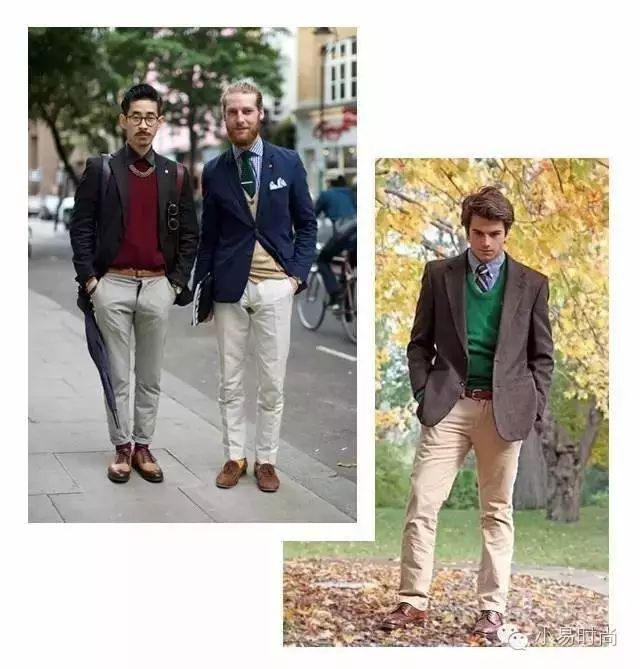 标准的 Preppy 套装通常由衬衫、套头针织衫、卡其裤、呢质西服、格纹围巾组成,可以选择单独穿着,也可以组合穿着。特别适合秋风落叶,特别适合校园。