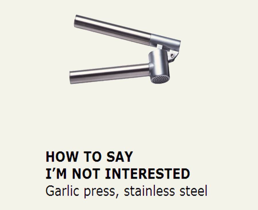 事实上,生活中我们总会遇到这样的困扰,明明对很多事物或者人并不感兴趣,却又只好闷在心里。那么这件压蒜器正好可以帮到你:啊,不好意思我中午吃了大蒜……(捂嘴)