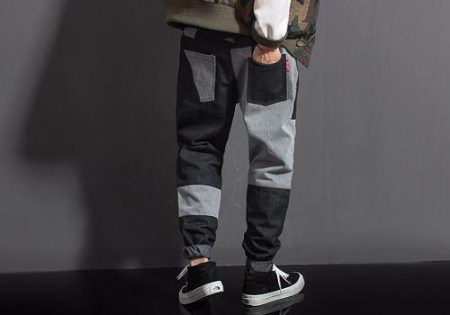 材质上的选泽不用过于讲究,比如我们最常见的拼接裤中的工装裤镶丹宁布,糅合不同的材质,或许更让人感受到创意。