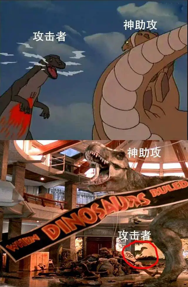 海尔兄弟永远是幸运的,他们不但遇到了一个食草龙和帮他们对抗霸王龙,而且还幸运的赶上了地球灭绝再次穿越回现代!而《侏罗纪》里面的孩子们也同样的幸运,他们遇到了爱吃迅猛龙的霸王龙,躲过了迅猛龙的追击,逃出恐龙岛,看来他们都有一个恐龙里的神助攻!