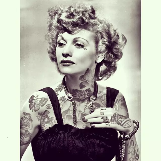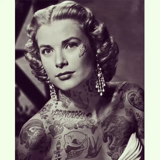 Cheyenne Randall在他的轻博客里放了很多别出心裁的老照片,他给每张照片都做了处理——照片里的名人都被纹了身。梦露,凯莉,泰勒。赫本的天使面孔也配上炫酷的纹身,也多了几分帅气。
