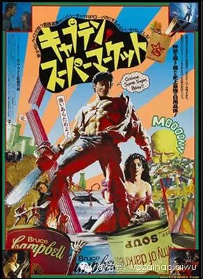 在开始着手设计海报之前,日本的市场部仅仅观看了影片的开头几分钟;他们大胆地决定把影片名称《鬼玩人》改成《超市上尉》……因为艾许(Ash)本人也在超市待过嘛。