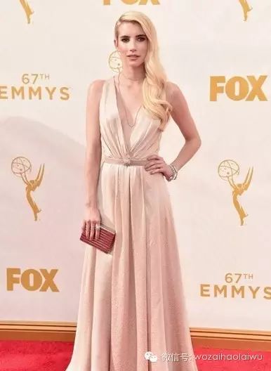 c. 艾玛-罗伯茨好像就没有穿错过,私服好看,礼服也超美。这款裸色深v礼服衬得她的肌肤如玉般光洁,精致的收腰,材质很有垂坠感,仙气十足,加上一头轻盈的金色卷发,真是散发出女神光辉。