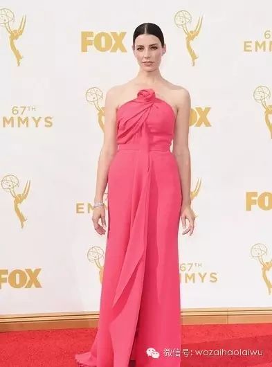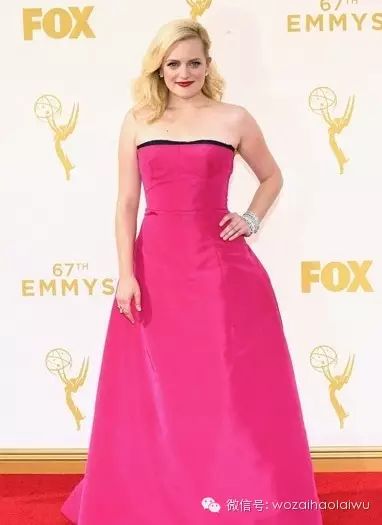 e. 伊丽莎白-莫斯一袭玫红色抹胸礼服走上红毯,身材显得有些丰腴,但也不失曲线美。这种造型简洁而挺括的礼服最能凸显优雅气质了,抹胸处的一点黑色点缀显得更有层次感。