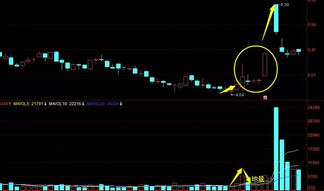 成交量也出现近期地量水准,符合一戳就破形态,后市股价从5.4元一直涨到6.3元。