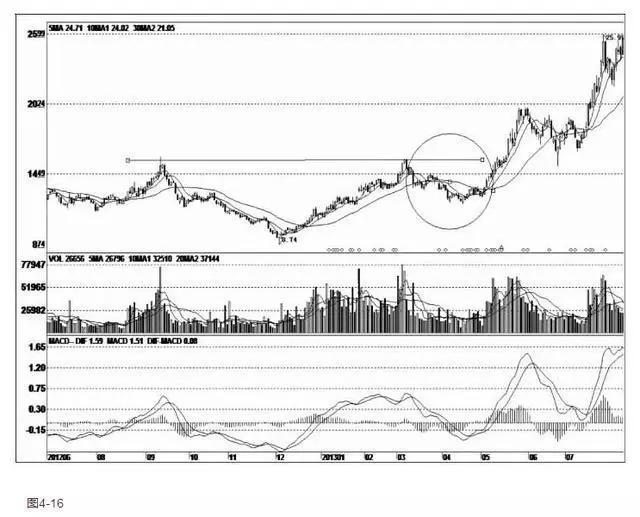 (2)当股价遇到前期高点压力后,如果没有出现明显的下跌走势,可能是假的压力位。相反,当股价抵达压力位附近时,出现快速回落的,可能是真正的压力位。