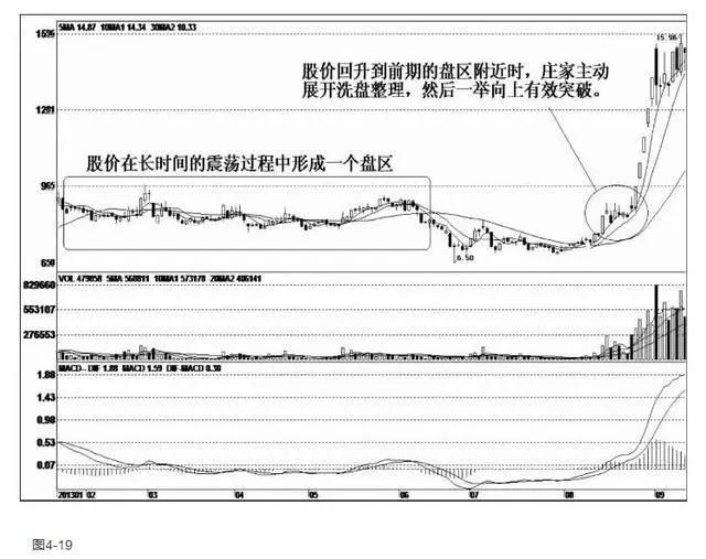 https://p3-tt.byteimg.com/origin/pgc-image/RZXC4mt45iRcOm?from=pc该股中的庄家就是利用前期的盘整区完成洗盘整理。因为这个盘整区存在一定的技术压力是无可争议的,这也是投资者的共同看法,因此当股价回升到这里的时候,多数庄家会在这里耍一些花招来欺骗散户,更多的是制造假的技术压力,形成股价上涨遇到阻力而不能有效突破的假象,误导散户离场操作,以此达到坐庄目的。