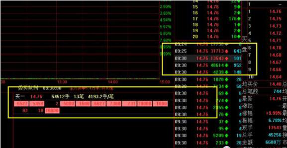 挂单踊跃:如果一只个股买卖盘挂单都特别大,则往往意味着该股将会出现异动。具体参考第1条;