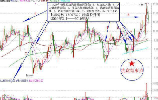 实战案例:上海梅林(600732)刚刚结束的洗盘(参考图片)。