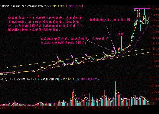 有些个股在平缓的上升通道上突然拉出难看的长阴线,跌破通道下轨,此种走势多为主力的洗盘震仓行为,洗盘之后走势更加轻盈 。