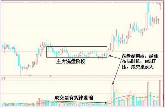 2、洗盘阶段成交量有规律的萎缩。