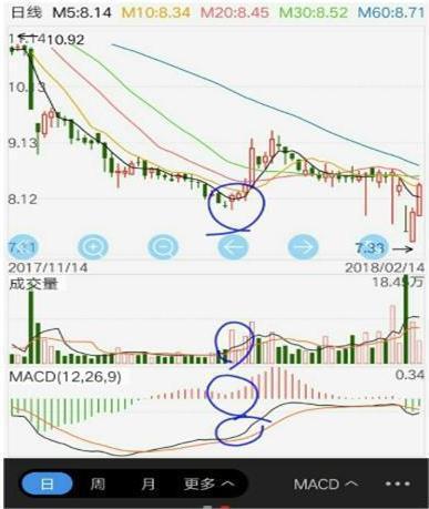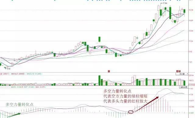 第一、MACD柱体由绿变红(由0轴下方升至0轴上方),意味着由空方主导转变为多方主导;