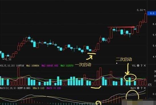 当红柱二次启动时,量能出现同步放大(一般以高过前期量能为最佳),表明未来股价大幅上涨的可能性加大,发出买入信号;反之,当红柱二次启动时,量能并未出现同步放大,未来股价出现大幅上涨的可能性较小且要注意后市股价大幅回落的可能性加大。