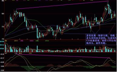但是在随后的振荡上涨中,尤其是创出新高之后,MACD不能出现背离状态,另外半年线120同时不能出现掉头现象,一旦掉头,短线必须卖出