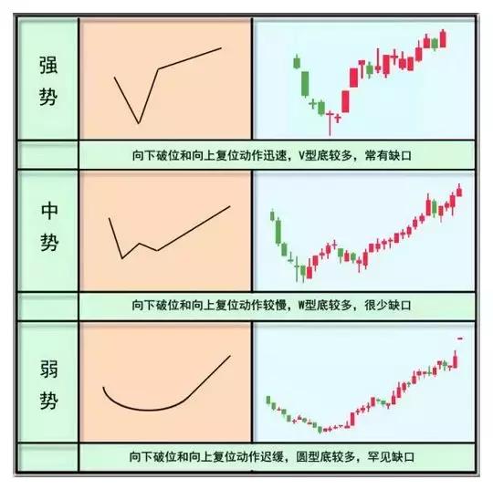 强势案例——向下破位和向上复位动作迅速,V型底较多,常有缺口。