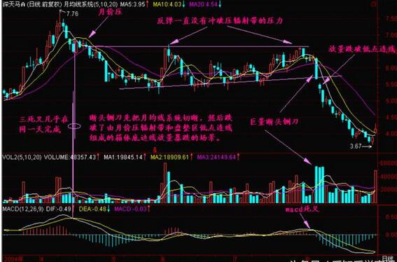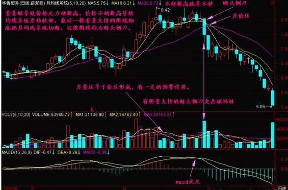 “断头铡刀”的市场意义为:(以月均线系统为例)