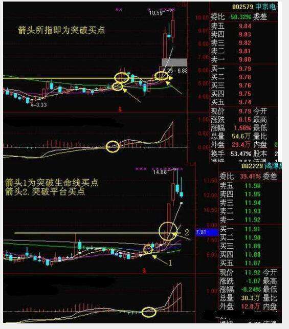 https://p6-tt.byteimg.com/origin/pgc-image/RVbjDxLBaH1z8I?from=pc切割线选股法:平台整理末端,股价先突然下砸,并有跌破MA10的动作,随后一根中阳线穿越平台,此时可追涨。