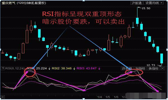 4、当RSI走势形成双重底,双重顶等等一系列形态时,个股可以按照这些形态的交易手段进行交易。