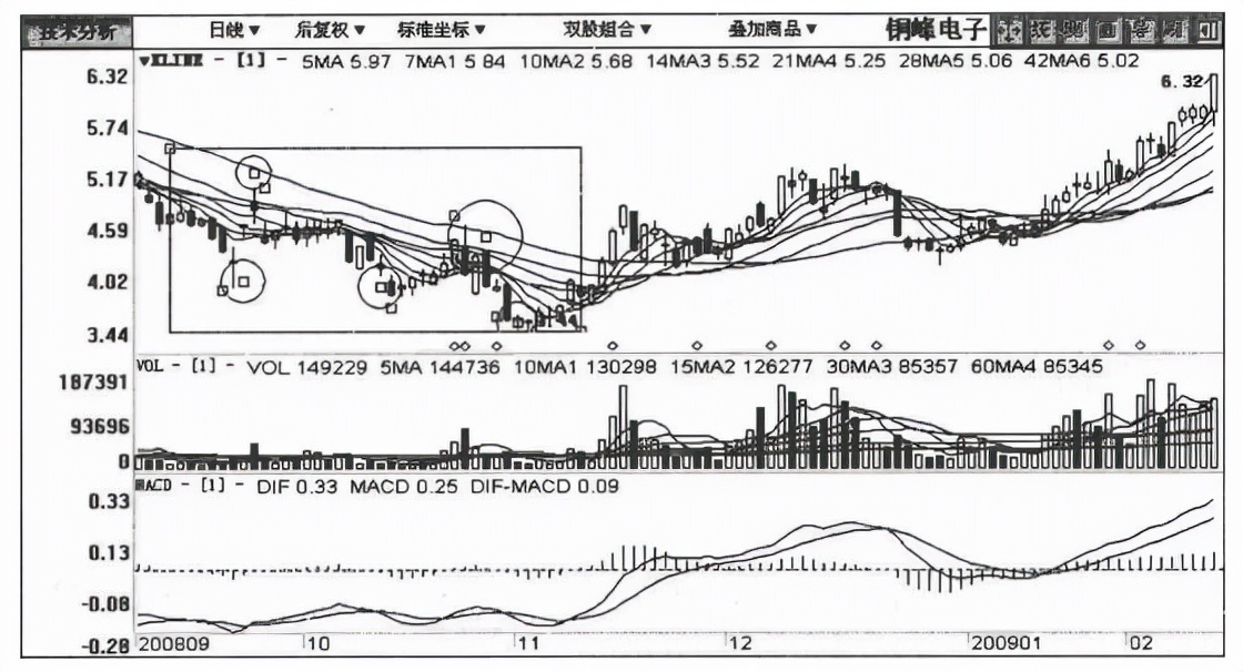 当股价在低位震荡时,大盘或个股看似要跌了,甚至是K线上留下了较长的阴线,可最终成交量却不大,股价跌幅也不大;相反,当股价上涨时,看似收出了中阳以上的阳线,但最终涨幅并不大,就像雷声大雨点小或是干打雷不下雨一样,但这往往说明主力在暗中吸筹建仓。
