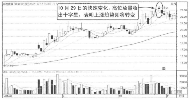 高位收十字星——顶部星象,退出观望