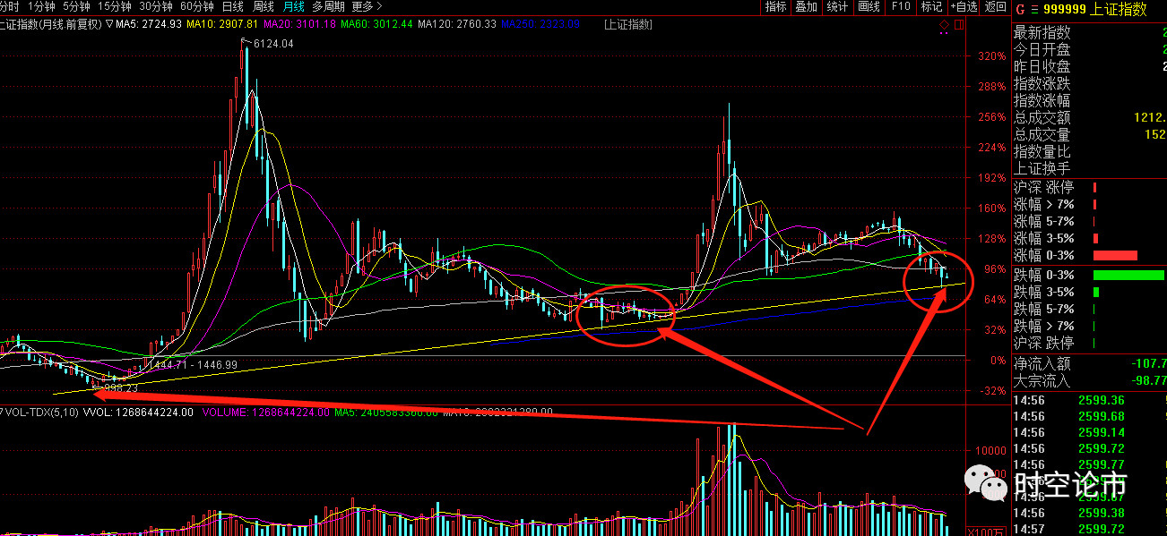 不过虽然下探的可能性较大,但是2500附近的支撑力度却确非常的强势,因为此处是大趋势线的支撑位,上一次的下跌就是在趋势线位置止跌回升的!