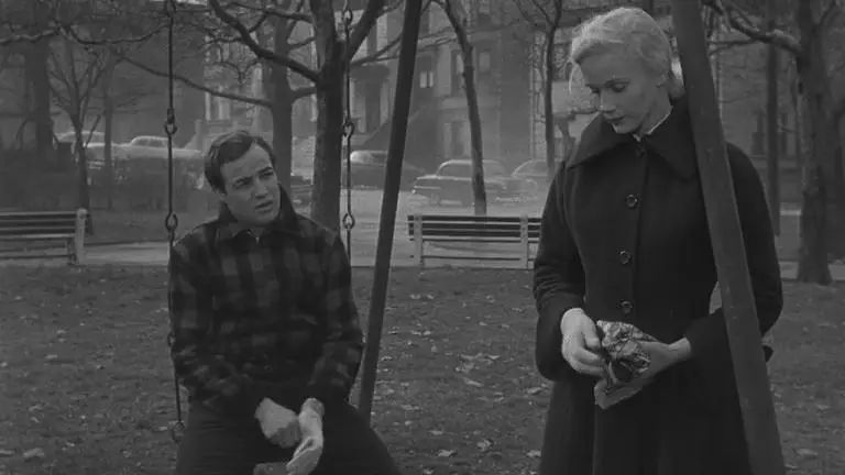 在影片里,白兰度饰演的Terry是黑社会的打手,他对女孩Edie的哥哥之死负有责任。他想和Edie见面聊聊,可以想象他见到Edie之后内心会充满尴尬和内疚。只见两人一边走路一边交谈,Terry感到有一种向善的力量在将他拽出恶的掌控,他的灵魂在经受撕裂。Terry不时落在了后面,她想甩开他,而他也不太敢面对她。这时候Edie从口袋里摸出一双白色手套准备戴上,但其中一只不小心掉到了地上——这完全是意外,导演卡赞本来可以喊停,但他想看看白兰度怎么来处理这个意外。