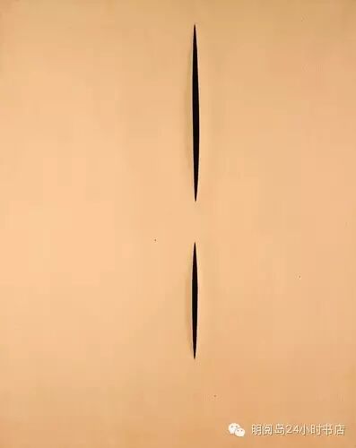 古人为了预测命运,会研究牺牲祭品的内脏,去看它们的肠子来了解未来的走向。丰塔纳只是在画布上划出裂缝,然后放下手臂,等待,就像一个算命者,站在他刚刚打开的门前面。