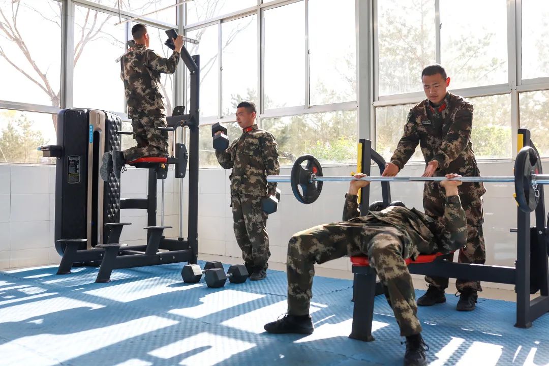 上等兵冯梁正进行卧推训练