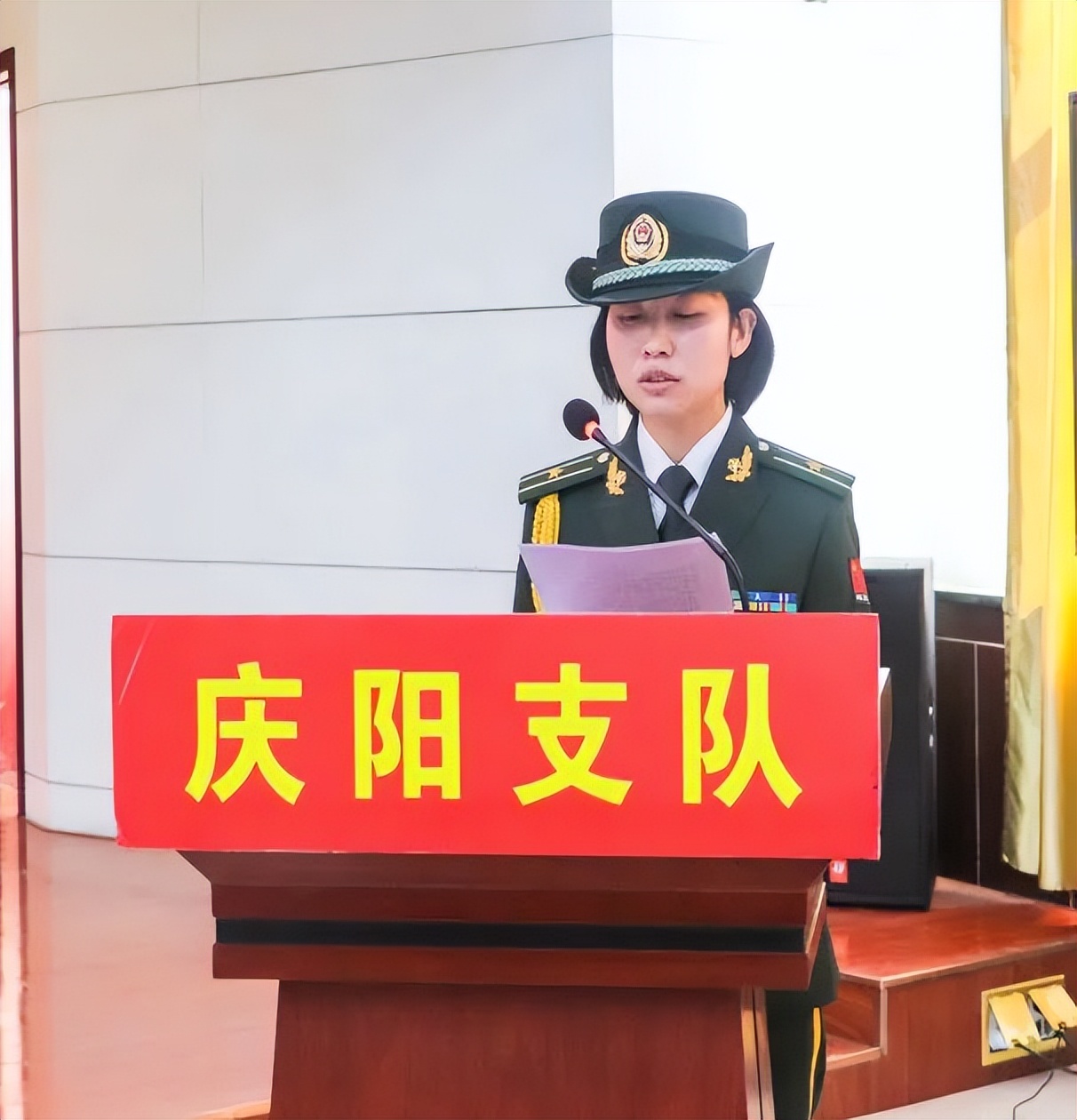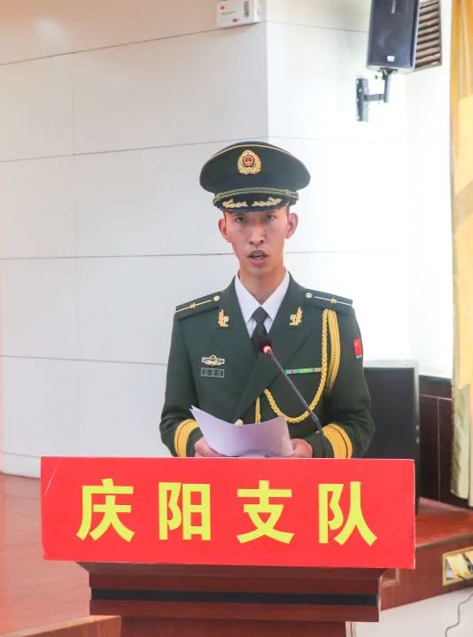 “人生万事须自为,跬步江山即寥廓。我将以青春之我奉献军营,唱响新时代的强军战歌!”在武警甘肃总队庆阳支队晋升(授予)警衔仪式上,新晋少尉排长宋德桐正在慷慨激昂发言,誓言铿锵,“星”光闪耀。