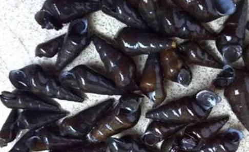 山坑螺,顾名思义就是生长在深山的山坑里面的一种螺蛳,相比于田螺而言,山坑螺对水质的要求非常高,只有在水质清澈且流动比较缓慢的山坑中。一旦水源受到了污染,就会大量减少,所以它要比田螺娇贵得多。并且和田螺相比,山坑螺要更加细长,它的外壳边缘轮廓略呈四方形,其大小就如人的手指较为细长,壳高达10厘米左右,最大的可以达到18CM,而螺层6级,壳口内为杏红色的,但是外壳基本呈黑色。