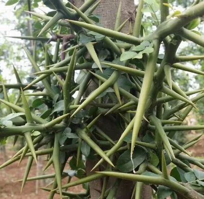 皂角树的多年生树枝和树干长有刺。刺大多是分枝的,有粗壮的刺,通常在分枝上有长刺。皂角刺可用作促进血液循环、治疗疮癣、消肿排脓、搜风排毒等药物。药用价值很高。