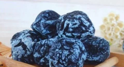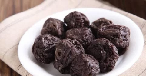梅子加工成乌梅,就是一味良好的中药。药材乌梅呈扁圆形或不规则球形,直径1.5~3厘米;表面棕黑色或乌黑色,皱缩,凹凸不平;以个大、肉厚、核小、外皮乌黑色、不破裂露核、柔润、味极酸者为佳。乌梅性味酸、温,入肝、脾、肺、大肠经,概括起来,有以下几种功能: