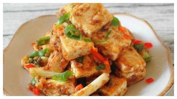 1、豆腐切成小方块,厚度不要超过一厘米,放盘子里摆好造型