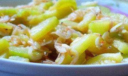 2、热锅放油,油热后煸香葱花;下入西葫芦片,大火翻炒,至微微塌软;下入虾皮,翻炒均匀,下入料酒,去除虾皮的腥味;