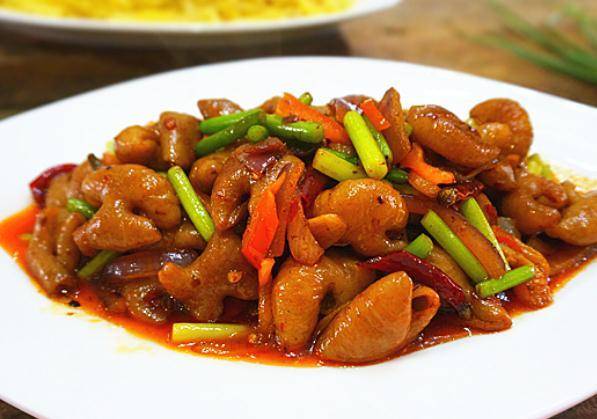 做法:1、鸡肉切丁,加入淀粉,味极鲜酱油,料酒腌制20分钟;