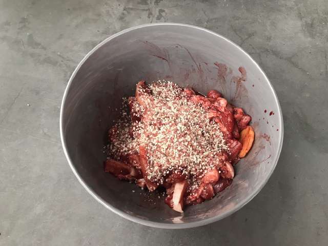5、然后后放入米粉再次拌匀,腌制30分钟左右。