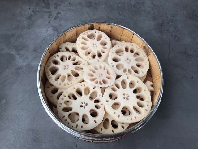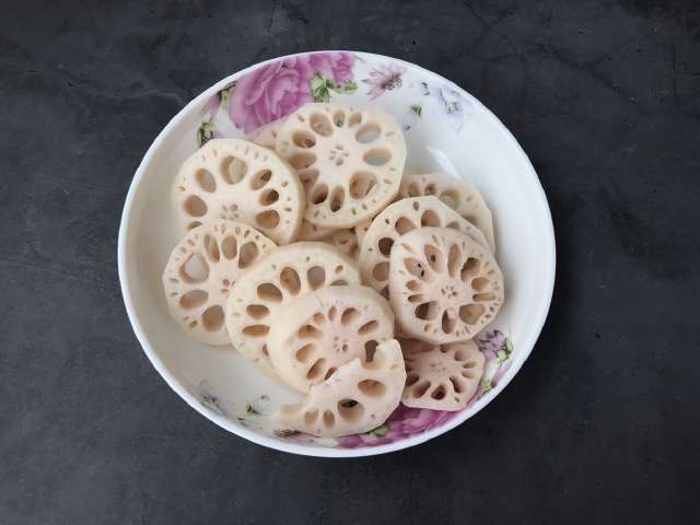 2、莲藕切厚片,垫底的蔬菜可以换成红薯,土豆,芋头都可以。