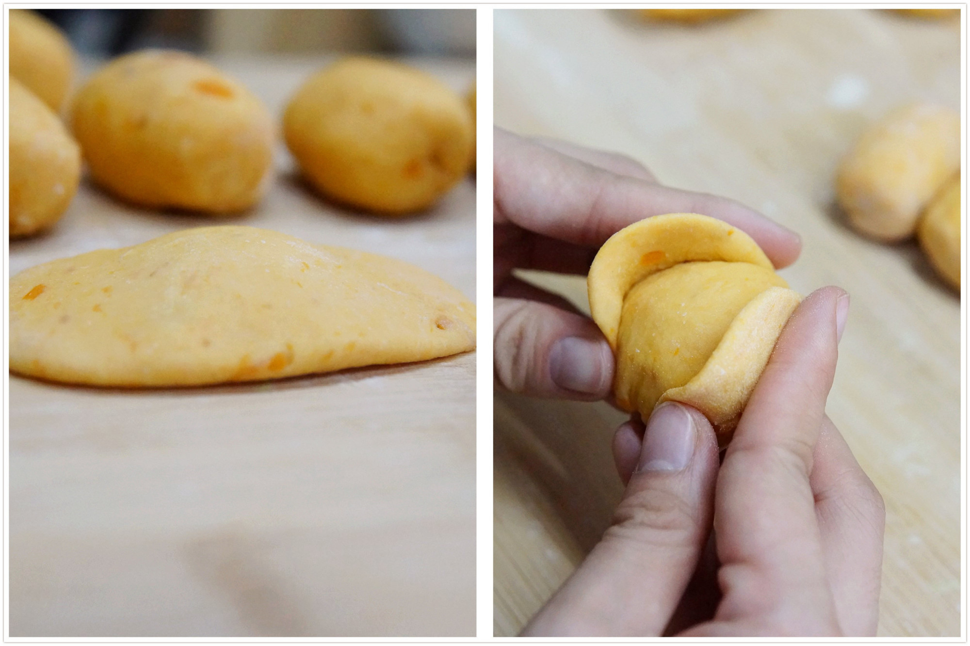 小贴士:再给大家分享2种元宝的做法,蒸馒头时也可以将其捏成元宝造型,增加节日氛围。