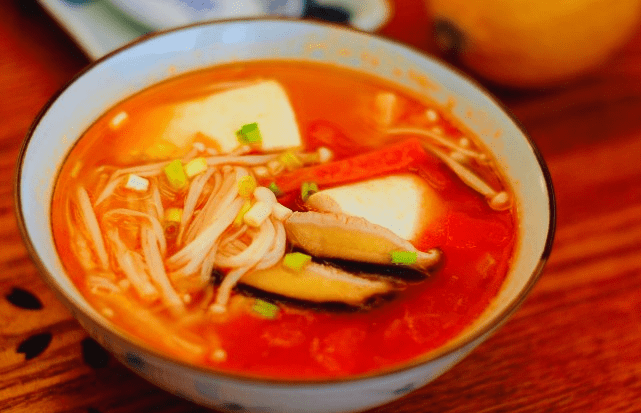 下班回家翻翻冰箱发现还有番茄、金针菇、香菇和嫩豆腐,不如煮一锅番茄菌菇豆腐汤,不仅味道鲜美,营养也更加丰富。白白嫩嫩的豆腐配上红色的番茄,再来点菌菇提鲜,豆腐与菌菇碰撞,味美汤浓,开胃爽口。