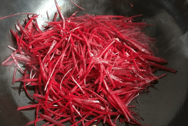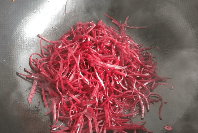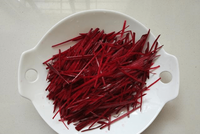 紫菜头将上下两头用刀削干净后清洗干净,切细丝。