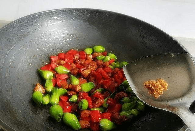 5、充分翻炒后加入红糖,少许红糖起到提鲜的作用。