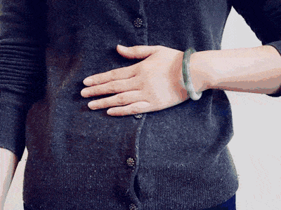 用双手掌心交替顺时针按摩肚脐。