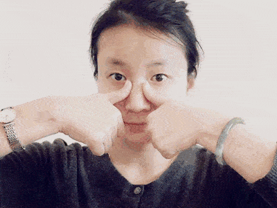 手大拇指的指背中间一节,相互擦热后摩擦鼻尖24次,用两手手指摩擦鼻旁各12次,用手指刮鼻梁,从上向下10次。