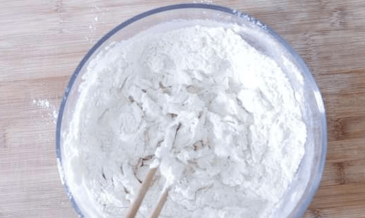 3:面粉里面加8分满清水,再加适量的盐,均匀地搅拌成糊状,要稍微干一点。