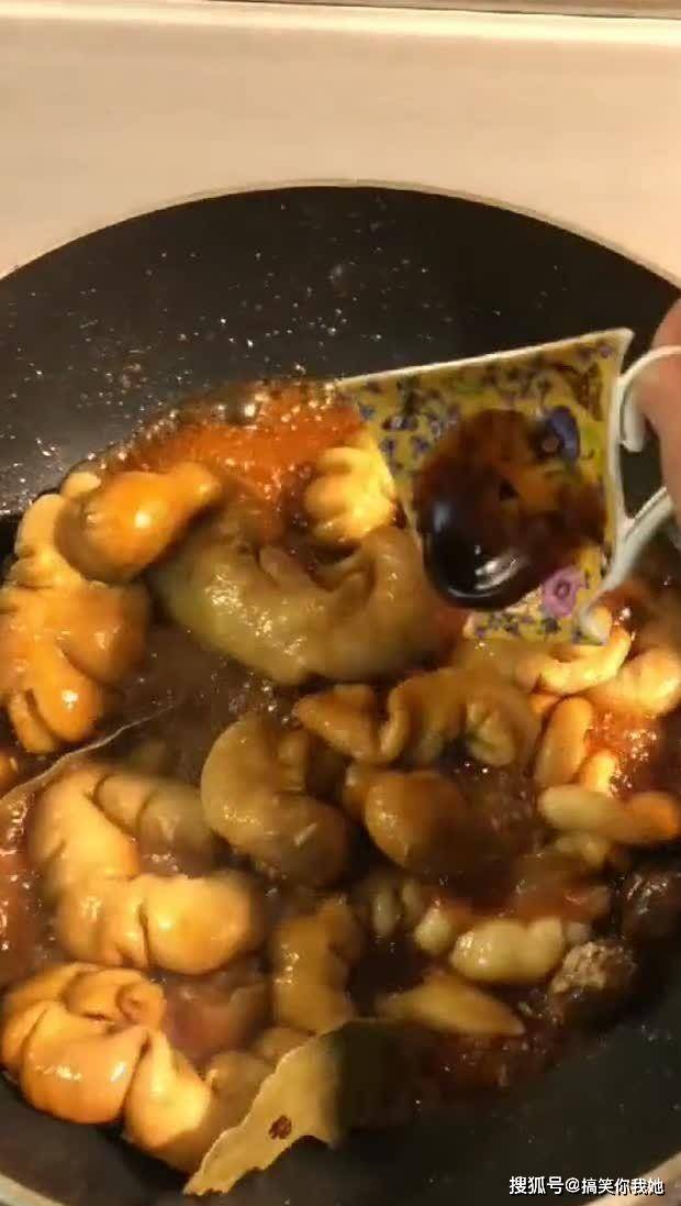 食材配料:猪大肠2根、葱姜、料酒、食用油、冰糖、盐、老抽、盐 、鸡精、白糖 、胡椒粉、味精、酱油、蚝油、十三香。