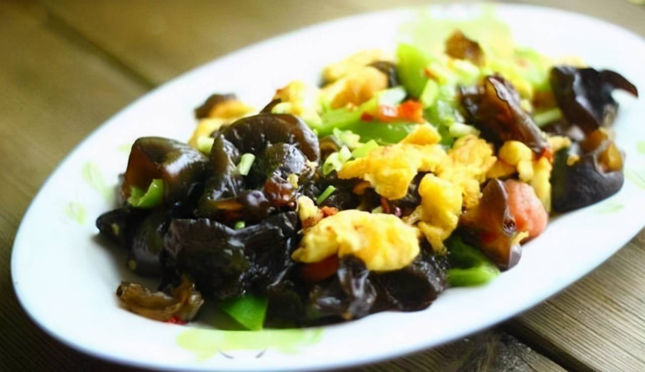 材料:鸡蛋3个、泡发的黑木耳1把、青椒1个、油盐适量。