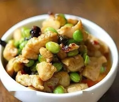 【毛豆鸡丁】1胡萝卜洗净去皮,火腿均切丁;葱切段;玉米粒毛豆放滚水中烫去外膜捞出、浸冷水泡凉捞出沥干;鸡肉洗净切丁,放碗加盐、胡椒粉、淀粉抓匀腌15分钟2热锅加油,爆香葱段,放鸡丁快炒盛出3余油继续加热,放胡萝卜火腿玉米粒毛豆及2大匙水,翻炒至熟,加鸡丁及盐胡椒粉炒匀。