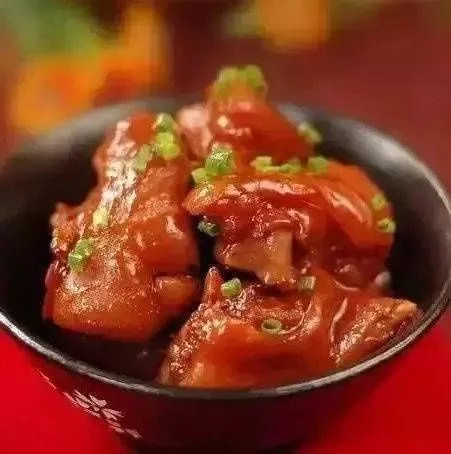 【玫瑰腐乳猪蹄】猪蹄剁块,在放了料酒的开水中焯一下,煮至出浮沫后捞出;玫瑰腐乳加一大勺腐乳汁捣碎;起锅热油,放入猪蹄炒微黄,加入葱姜、八角;加少许料酒,倒入腐乳汁,加入老抽、盐、冰糖,加没过猪蹄还略多的开水;小火烧至猪蹄软糯,转大火收汁,出锅撒上葱花即可。